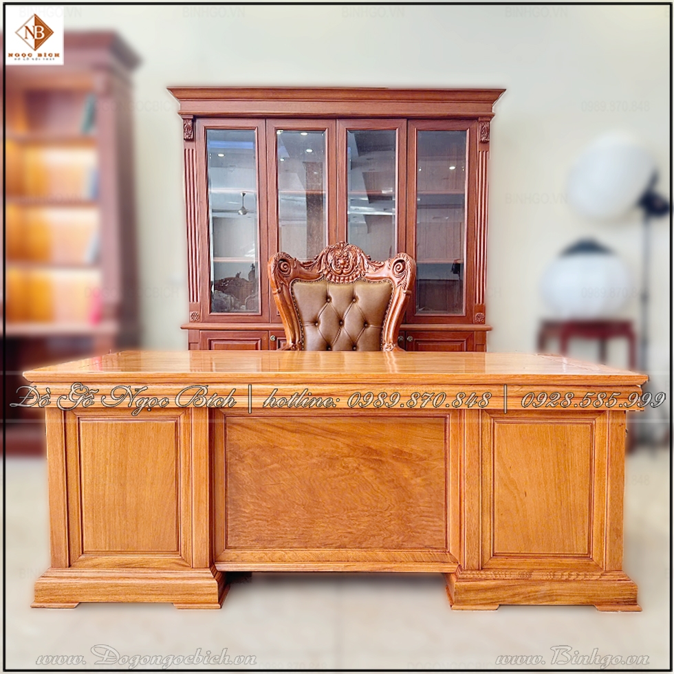 Bàn giám đốc gỗ Gõ Đỏ thường được ưu tiên trong các phòng làm việc cần sự sang trọng nhưng vẫn gần gũi và dễ tiếp cận.