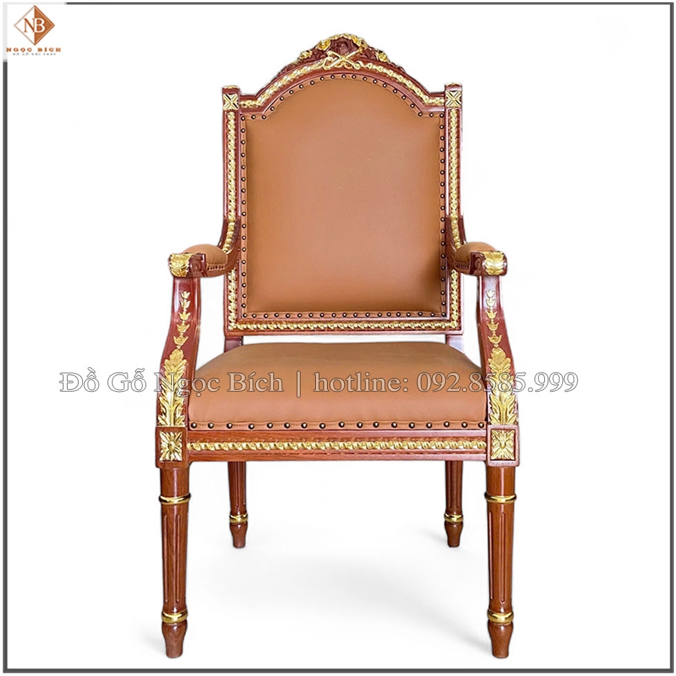 Dáng ghế bệ vệ, tay vịn cong uyển chuyển, tựa lưng cao tôn thế ngồi chuẩn lãnh đạo.